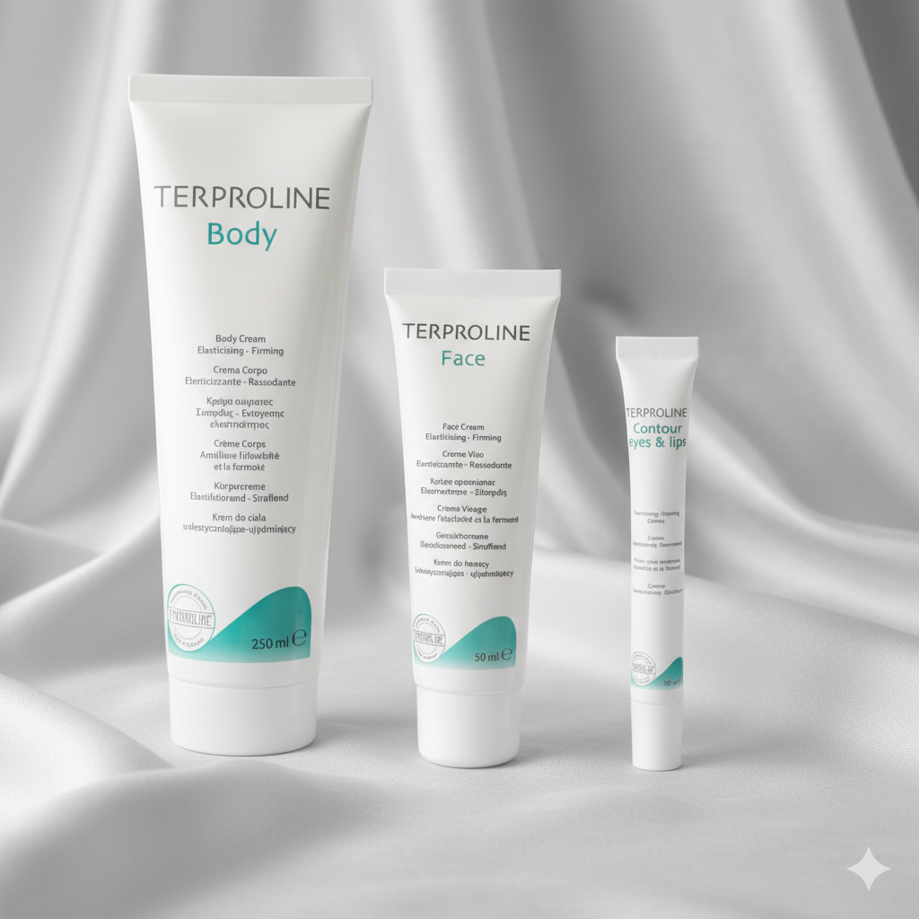 Tired of seeing your skin lose its youthful bounce? The Terprolineยฎ Three Product Set is your complete solution for a firmer, more elastic look from head to toe. This powerful trio works synergistically to improve your skin's tone and elasticity by boosting its natural ability to create new collagen, elastin, and hyaluronic acid.